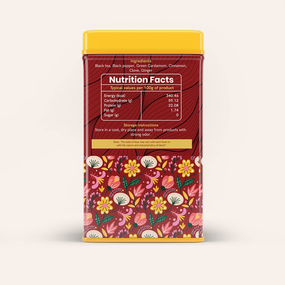 Black tea, Cardamom, Cinnamon, Black Pepper, Clove, Ginger