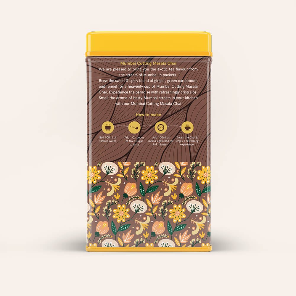 Brew the sweet & spicy blend of ginger, green cardamom, and fennel for a heavenly cup of Mumbai Cutting Masala Chai. Experience the paradise with refreshingly crisp sips. Smell the aroma of hasty Mumbai streets in your kitchen with our Mumbai Cutting Masala Chai.